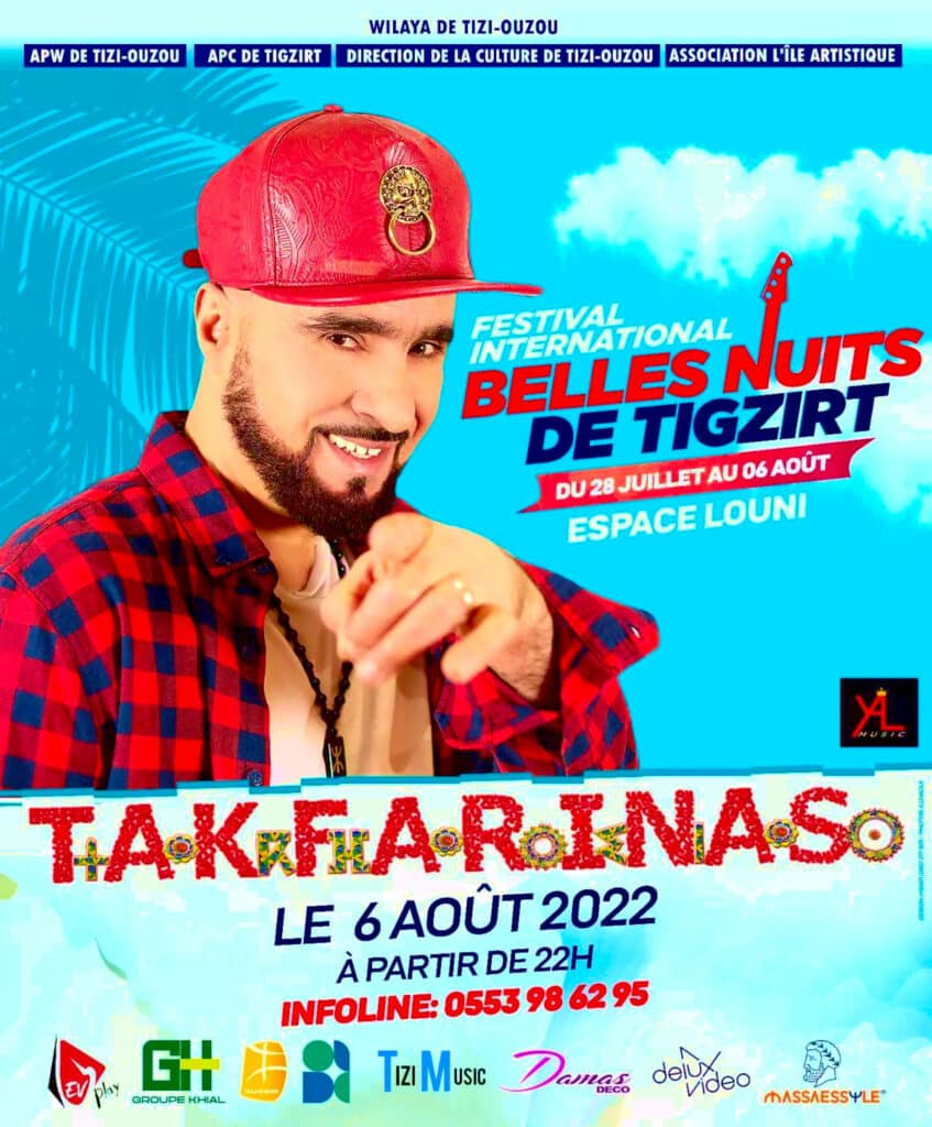 Takfairinas est attendu ce samedi 06 août 2022 à Tigzirt. Consultez l’affiche ci-dessus pour plus de détails. ✅ Tarif